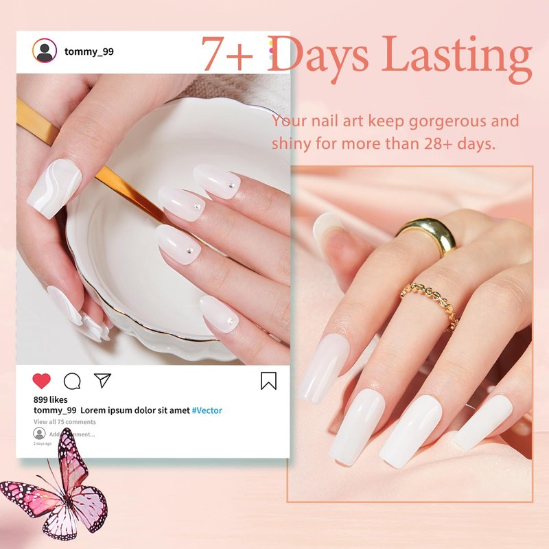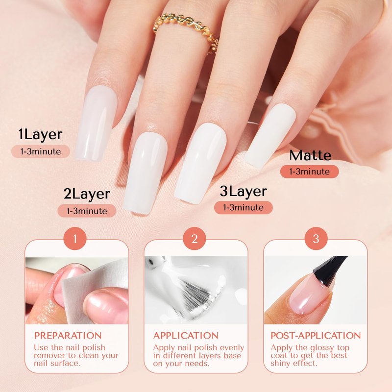 - ❤️【Multiple Effects】The first layer of color presents a transparent nail polish effect, and the second layer is a milky white nail effect. If you need an obvious pearl milky white nail, you can repeat the color several times, it depends on your preference, pay attention to avoid touching water and gravity pressure before drying, so as not to affect the product effect, this finger nail lacquer kit is the latest fashion bright nail polish colors, milky white for any season, make your nails look more fashionable.