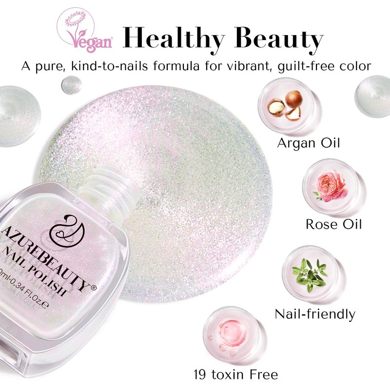 AZUREBEAUTY Vegan Shine White Nail Polish, Glitter Pearl White Quick Dry Complete Natural Super Lustrous Nail Enamel Polish,Professional for Nail Art DIY Manicure and Pedicure at Home