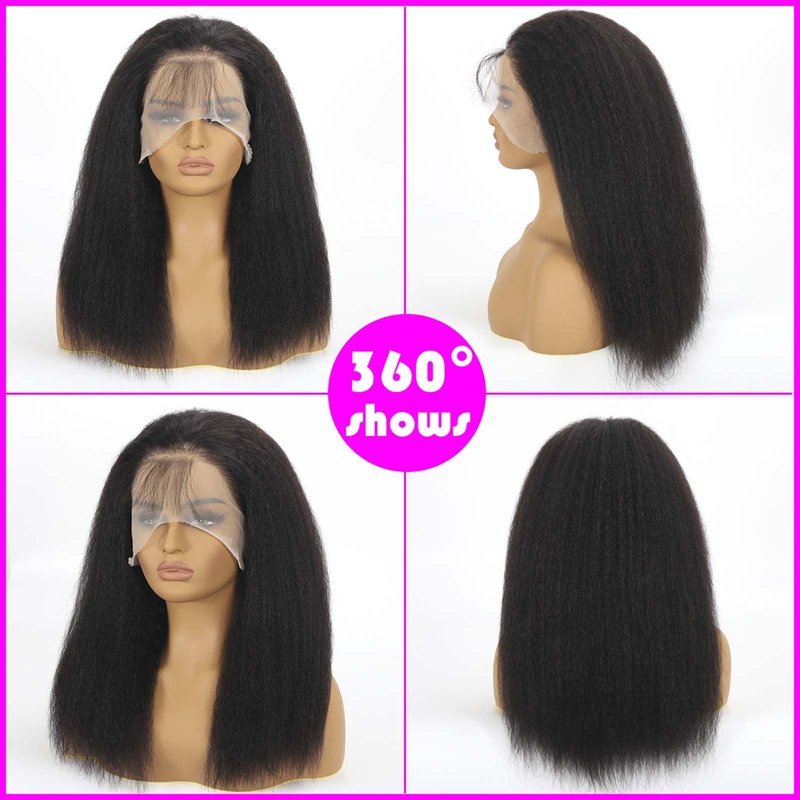 AZW Kinky Straight Wigs for Black Women Human Hair,180 Density13x4 HD Lace Front Wigs Human Hair Glueless Wigs Human Hair Pre Plucked with Baby Hair Bleached Knots Lace Closure Wigs (Black 20 Inch)