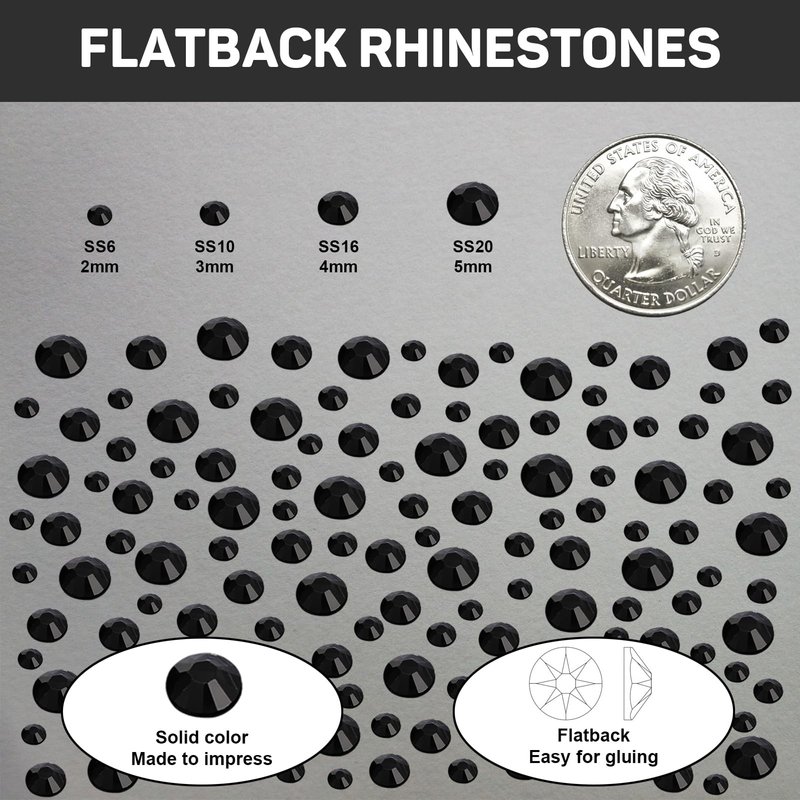 - Flat Back Rhinestones for Crafts - ⚫11000PCS flatback crystals black rhinestones with 4 sizes 2,3,4,5mm (ss8,ss10,ss16,ss20), 3 pcs total 45ml jewelry bead glue for jewelry making, and wax pencil picker. The black flat back rhinestones with glue bedazzler kit with rhinestones are easily for metal and stone beads crafting, jewelry making, DIY nails art & clothing, clothes, fabric or any decoration crafts.