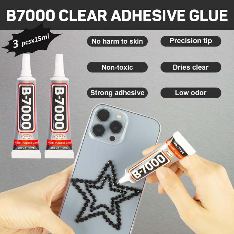 - b7000 Glue Clear with Precision Tip - ⚫The Adhesive glue quick dry clear with strong adhesive, comes with tiny needle for easy operation and precise glue control, waterproof, adheres to a variety of materials with great self-leveling adhesive and a clean gloss finish, and won’t turns yellow trace over time, locking gems in place with amazing hold. Drying time is 10 minutes. Totally dry after 24 hours.