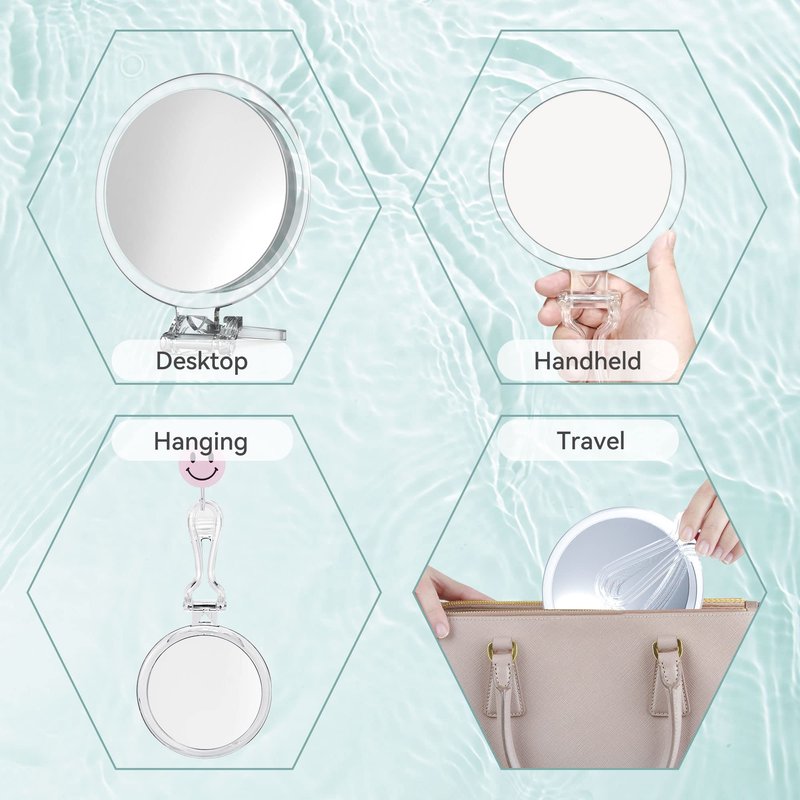 - 💗Portable and Compact Size: 5.6oz lightweight & 5'' diameter, the compact size makes it a perfect folding travel mirror, easy for us to carry and pack in a handbag, backpack or other else. What you will get is a very versatile portable mirror to show your beauty at any time.