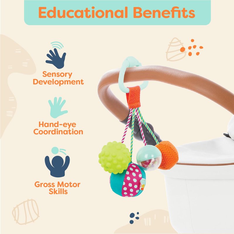 - Fun Features: Squeeze and shake the balls to hear squeaks, crinkles, rattles, and a chime.
