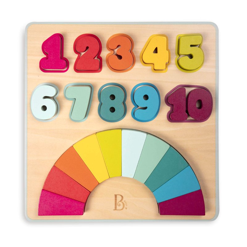 B. toys- Counting Rainbows- Number Puzzle for Kids – Wooden Number Puzzle – Counting Toy for Toddlers – 20 Chunky Puzzle Pieces – 18 Months +