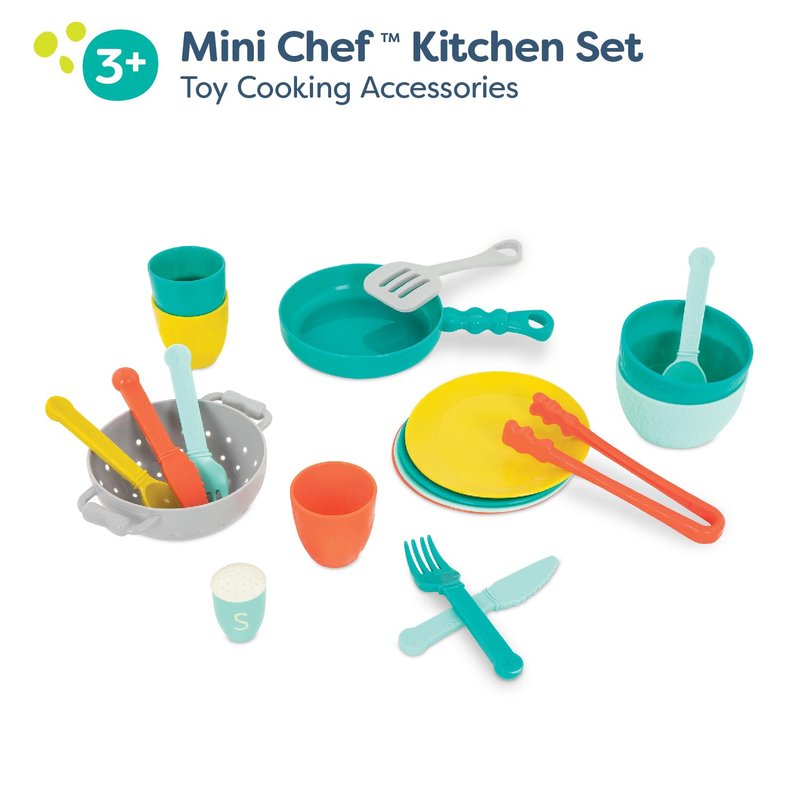 B. toys – Play Kitchen Accessories – Cookware, Dishes, Utensils – 33-Piece Play Set for Kids – Pretend Play Toys – 3 Years + – Mini Chef Kitchen Set