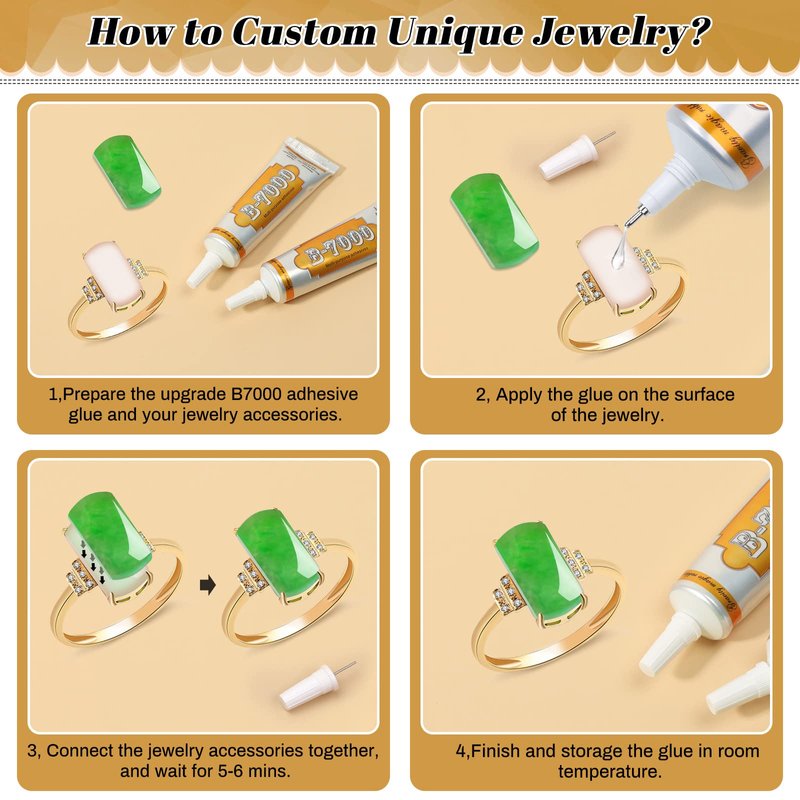 - ✅Semi-transparent Glue & Practical ✅30 to 35% solid content and 65-80A curing hardness, the upgrade b7000 shows transparent semi floating body, which always keeps great condition for surface of any products. Moreover that, when the glue for jewelry fully cures after 24-48h, it can be stretched to its own length of 900%, high elasticity makes it effectively bonding with the expansion of surface, and the waterproof formula remains flexible and easy to deal with any condition.