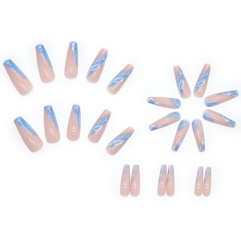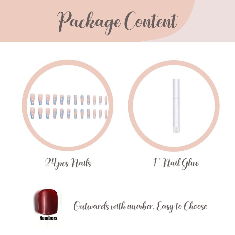 - 【☁Multiple Application】These blue fake nails designs can make you stand out at parties, dates, weddings, proms, and Christmas. It can be given as a gift to your wife, mother, girlfriend, daughter or friends. It will bring them a comfortable and convenient manicure art experience