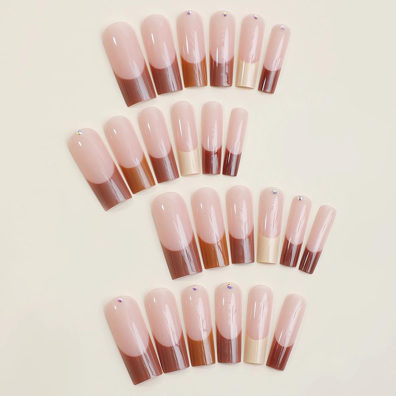 BABALAL Long Square Press on Nails Brown Fake Nails French Tip Glue on Nails Rhinestone Acrylic Nails 24Pcs Fall Squoval Artificial False Nails for Women and Girls