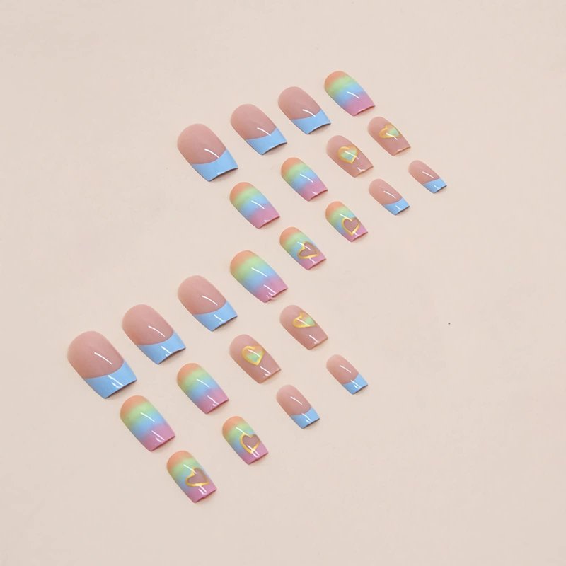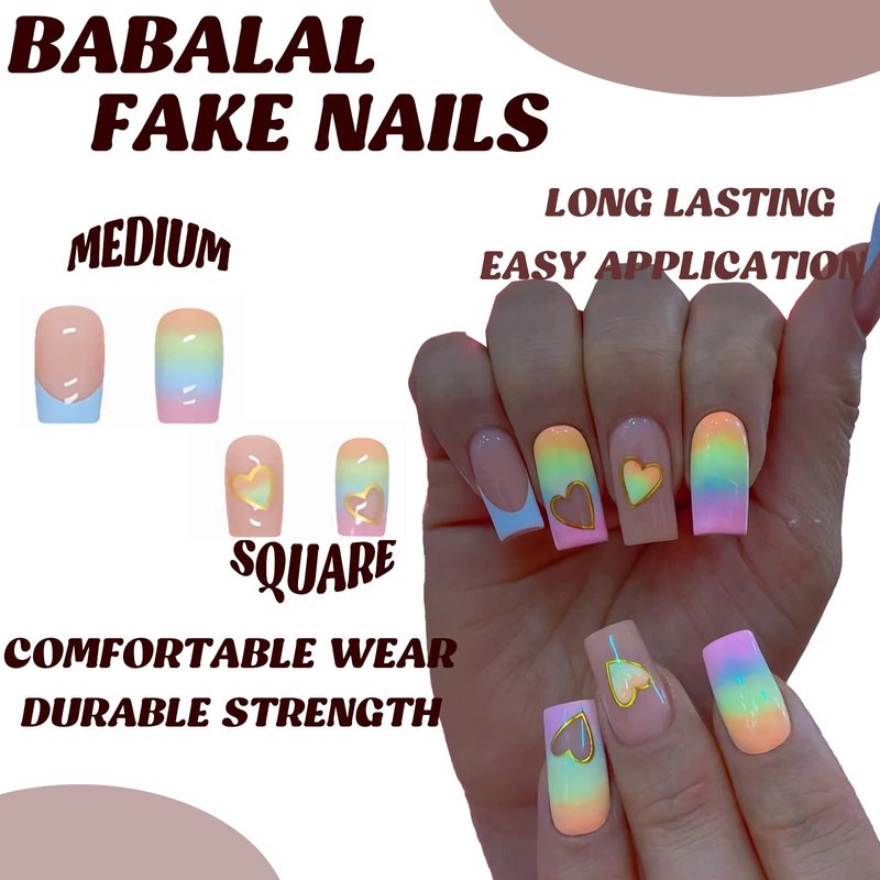 - 【Unique Design】 Rainbow french nails design, square press on nails medium, different colors are matched together to make your fingernails nicer