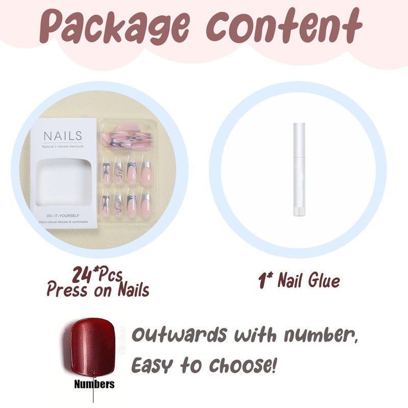 - 【Package Contains】You will get 24 pieces of long square press on nails with 12 different sizes, 1 nail glue for DIY your own nails. you can choose the most suitable false nail for yourself, it is easy to trim and file them to in any length and shape you like