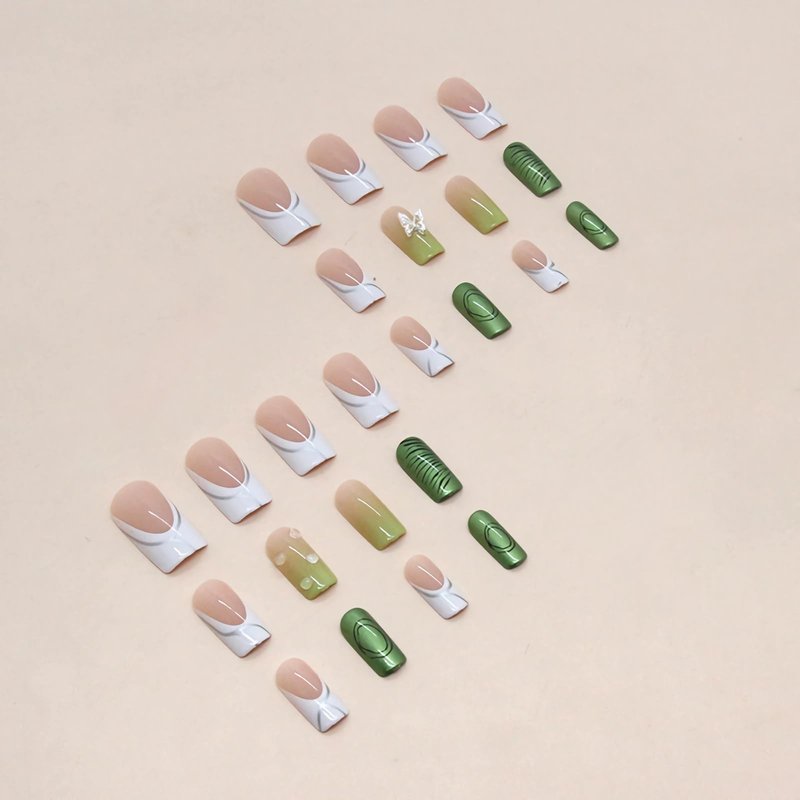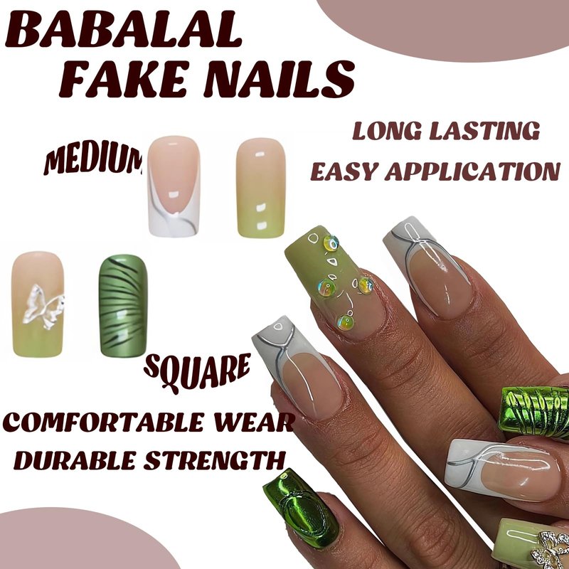 - 【Unique Design】 Green butterfly nails design, square press on nails medium, different colors are matched together to make your fingernails nicer