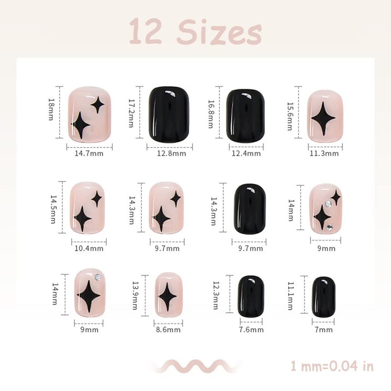 BABALAL Square Press on Nails Short Acrylic Nails Glossy Nails Squoval Black Star Fake Nails 24Pcs Artificial Nails for Women and Girls