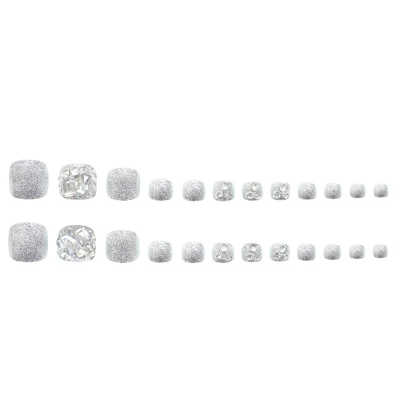 BABALAL Square Press on Toenails Short Fake Toenails and Fake Toenails with Nail Glue Sliver Glitter Glue on Nails 24pcs Acrylic Toenails with Diamond Designs False Toenails for Women and Girls