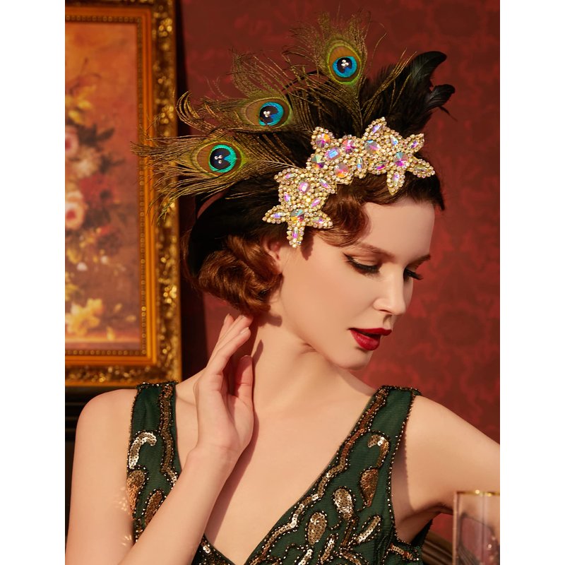 BABEYOND 1920s Flapper Hair Clip 20s Great Gatsby Headpiece 1920s Flapper Gatsby Hair Accessories (Peacock)