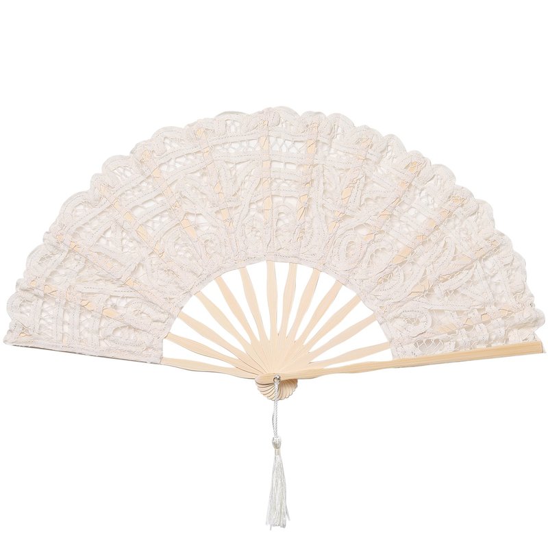 - Material: Cotton lace fabric, bamboo ribs and tassel pendent.