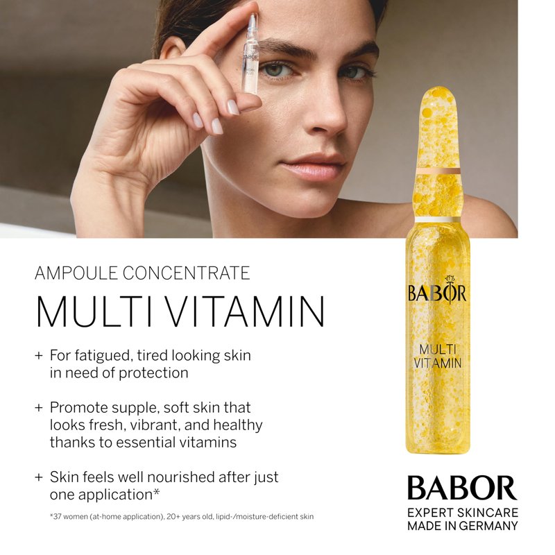 BABOR Multi Vitamin Ampoule Concentrate, Revitalize Dull Tired Skin, Vitamin A Increases Radiance, Vitamin C Evens Tone, Niacinamide Supports Skin Barrier, Vitamin Skincare Capsules, 7 Treatments