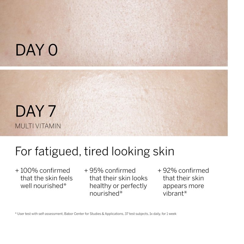 Multi-Vitamin Ampoule Concentrate is for fatigued, tired-looking skin in need of protection. Vitamin boosters provide vitality and reinforce skin. Nourishes, brightens, and strengthens the skin barrier With Vitamin A & E.