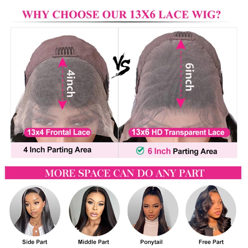 - 【13x6 HD Lace Frontal Wigs Human Hair Advantages】13x6 HD Transparent Lace Take Bleach Well And It Melts Great, And There is So Much Lace Space for Really Deep Parts, Can Make Your Hair Style More Natural and Gorgeous.