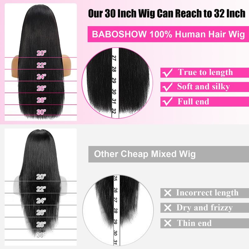 BABOSHOW 220% Density 13x6 HD Lace Front Wigs Human Hair 28 Inch Straight Lace Front Wigs Human Hair Pre Plucked Human Hair Lace Front Wigs for Black Women