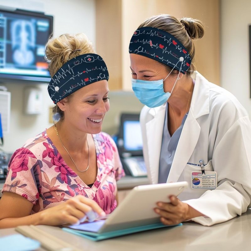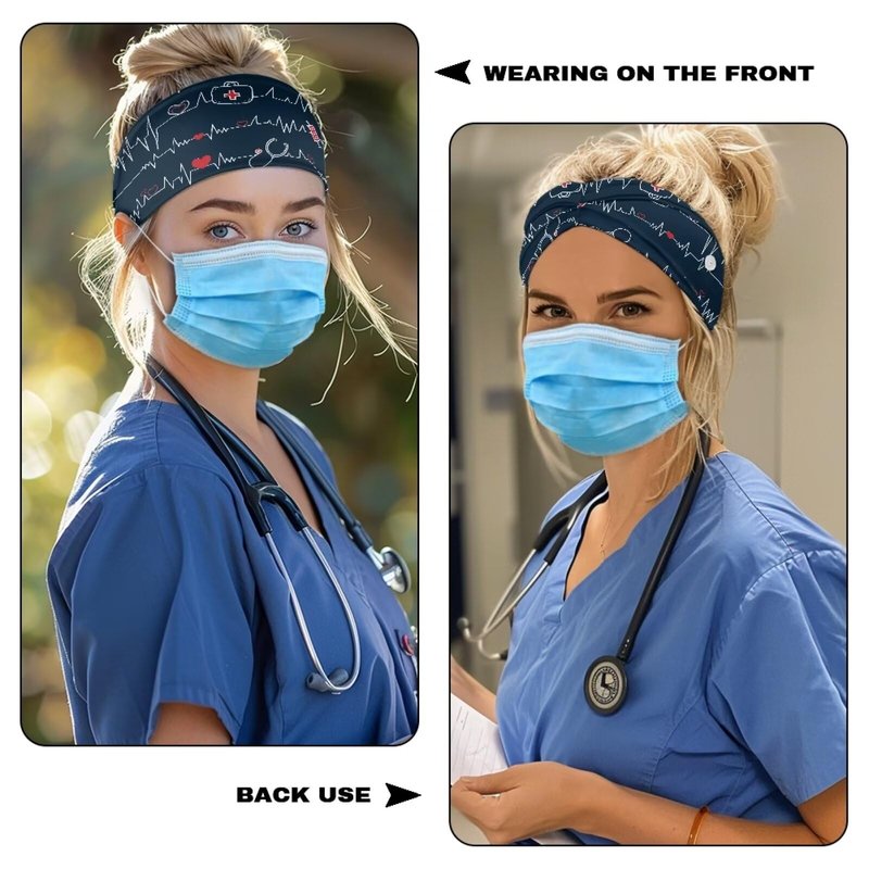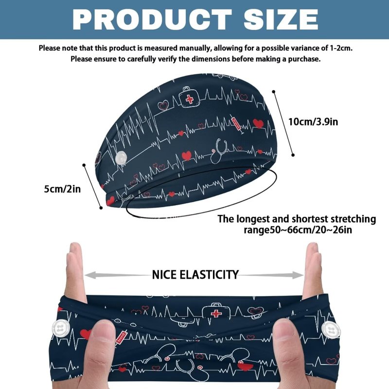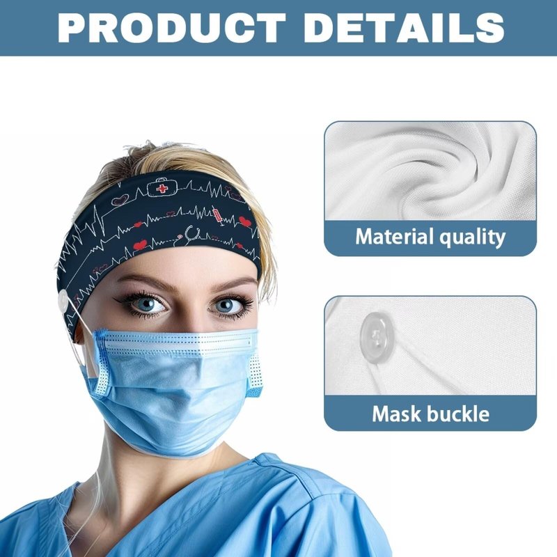 Babrukda Nursing Headbands with Buttons for Nurse Doctor Women Men Bandana Headwrap Elegant Style Face Covering Holder Ear Protection Wide Stretch Hair Wraps Elastic Sweatband Turban