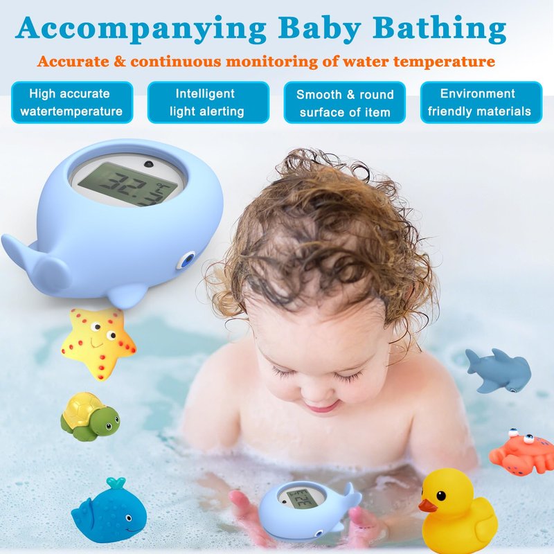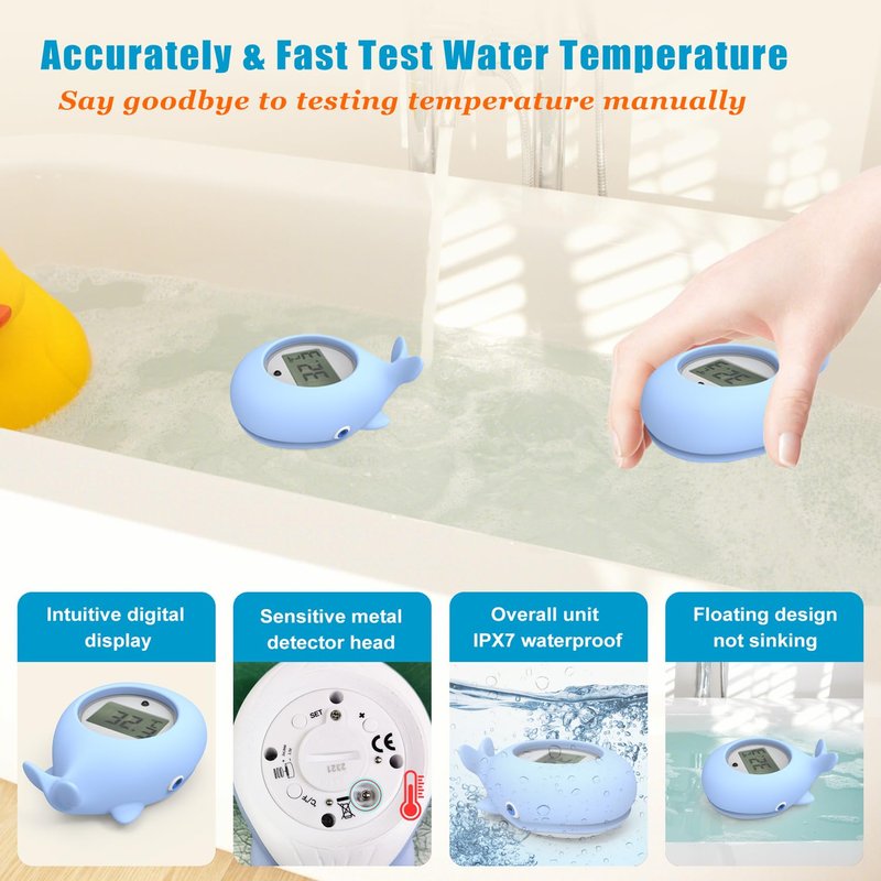 - 【SAFE & HIGH-QUALITY】 The Water Thermometer is made of BPA-free. Our baby bath toys are non toxic, and tested to meet the US Safety Specifications for toy safety. Make bath time worry-free and fun-filled! Ensuring safety for your baby. Its smooth, burr-free surface won't harm delicate skin, making it a great size for little hands to play with. It serves as both a bath thermometer and a fun floating toy for the bathtub or pool, making it a must-have item and perfect gift for newborns.