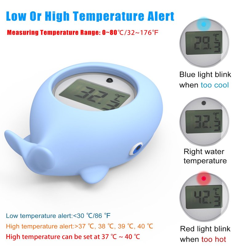 New Upgraded - Simplified operation. ✔ User-Friendly: Instantly turn on when in water ✔ Auto Turn off: after 15min out of water ✔ Easily switch Fahrenheit or Celsius Safe & Waterproof Material. ✔ Made of high-quality material, No Formaldehyde, No Plasticizer, No BPA ✔ Every angle is round and smooth, baby won't get hurt when playing Quick, Easy and Accurate. ✔ Advanced sensors and smart chips provide you with a reliable and accurate temperature ✔ Quick measurements in seconds Measuring Range: 32-176℉/ 0-80℃