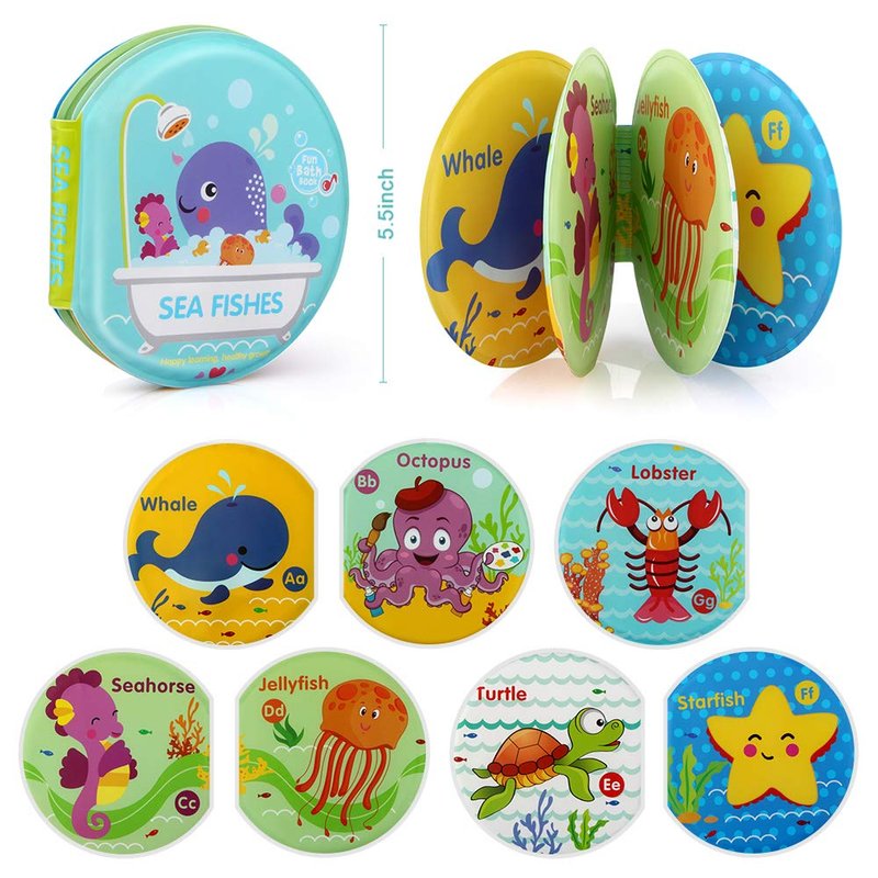 - First Bath Books for Babies: Vibrant images of baby books and soft-touch getting baby's attention and stimulating them to explore the world, which also interested toddlers with crunchy noises by pressing squeaks of the cover of baby books.