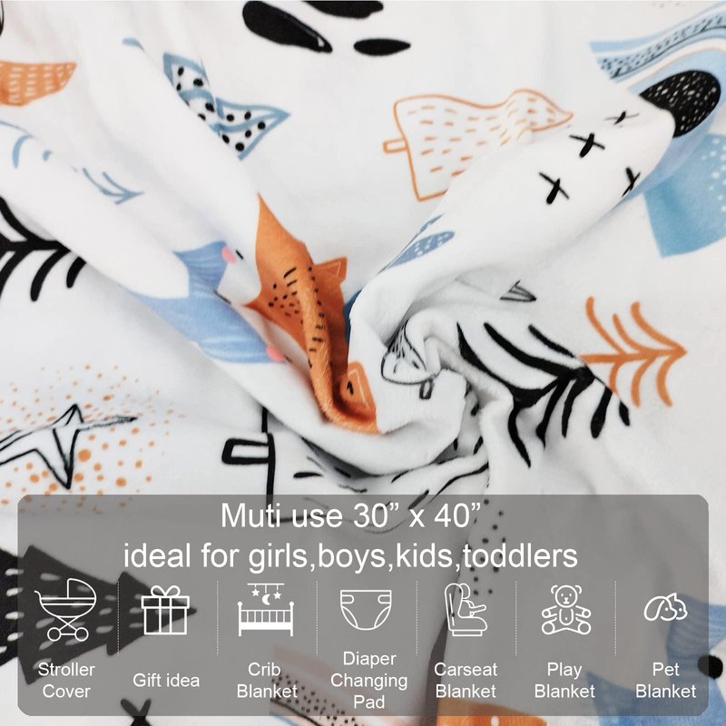 Baby Blanket for Boys Girls (Fox Printed, 30"x40") with Double Layer Dotted Backing Soft Plush Minky Blanket for Toddlers Newborn