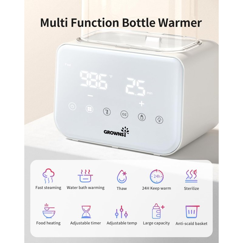 Baby Bottle Warmer, Grownsy 10-in-1 Fast Bottle Warmer Accurate Temp Control, with LCD Display, Timer, Defrost, Sterili-zing, Keep 24H, Double Bottle Warmer for Breastmilk& Formula, Heat Baby Food