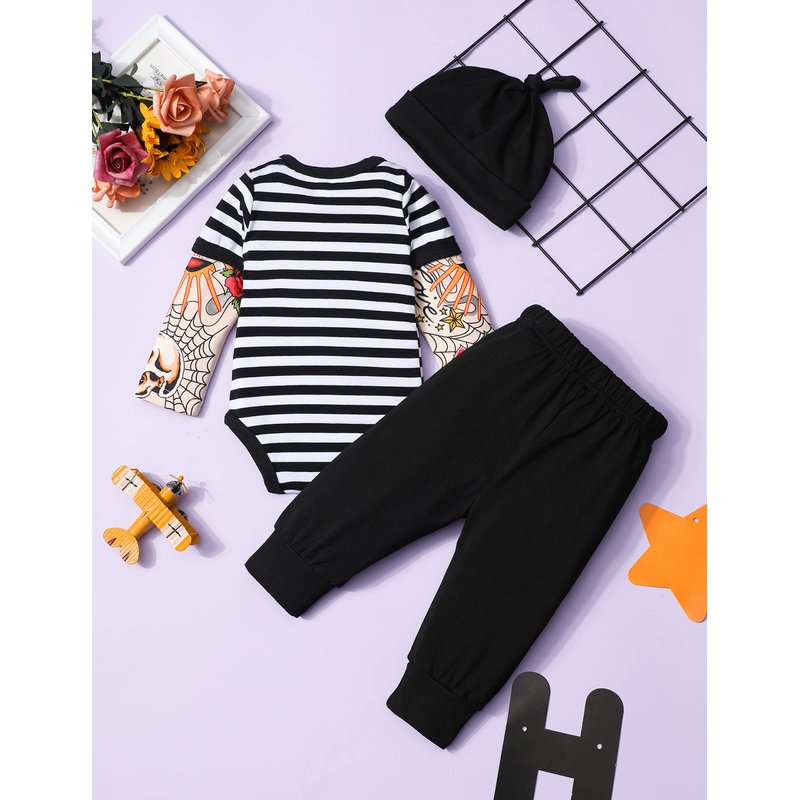 - 💘💘【Best Materials】Fommy Baby boy clothes is made of natural materials to bring comfort to your baby. Soft, safe, not irritating to baby's skin, very comfortable to wear and exercise. Tattoo sleeve and long pants hat set is adorable and unique. This cute baby boy clothes are the best gift for newborn babies