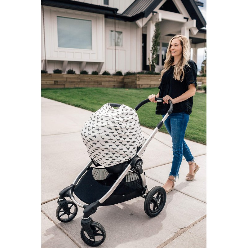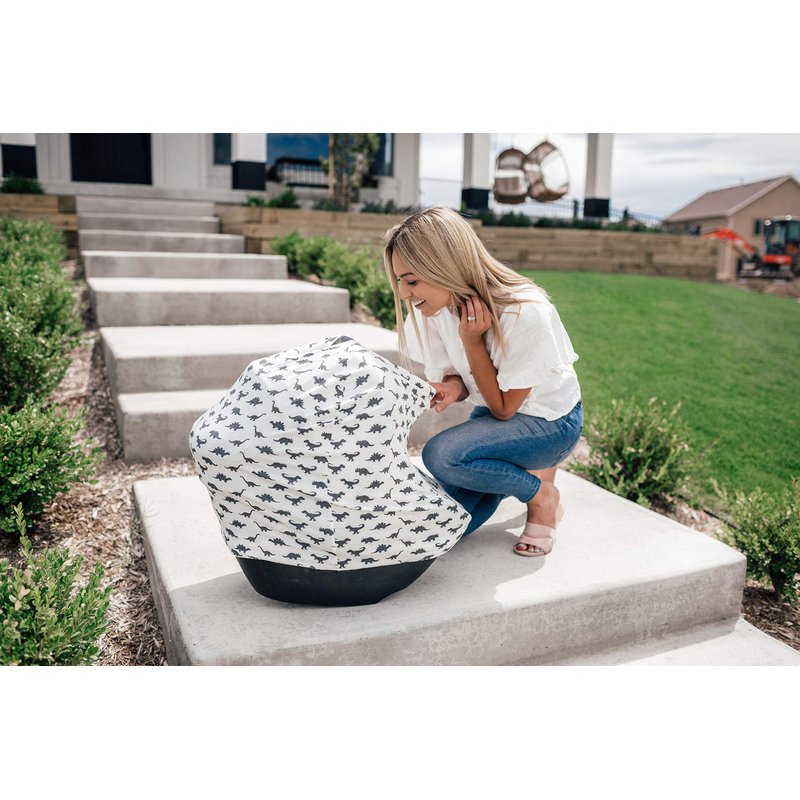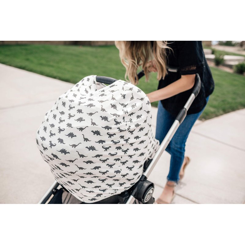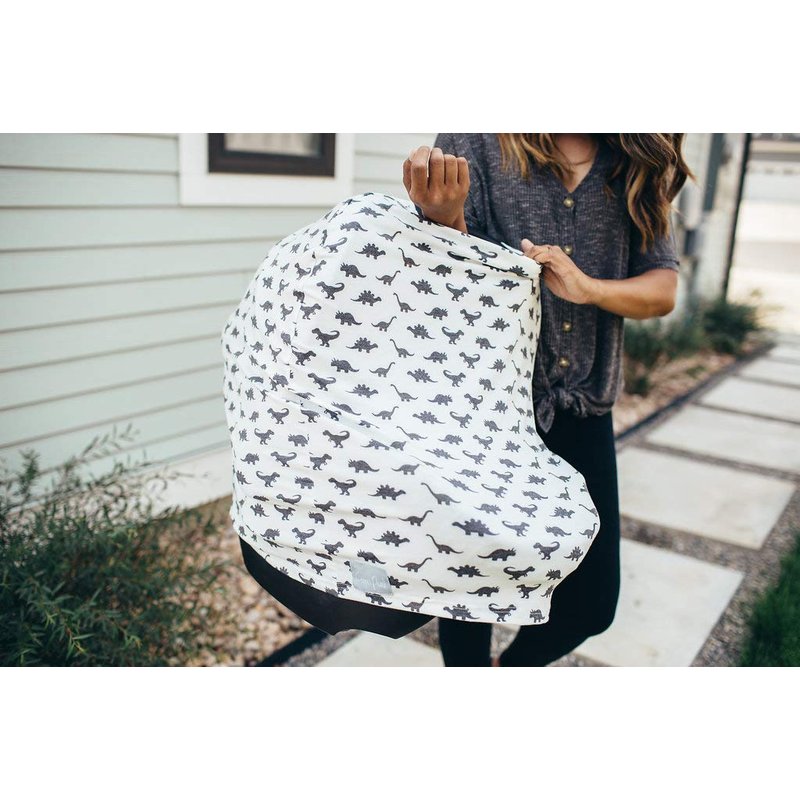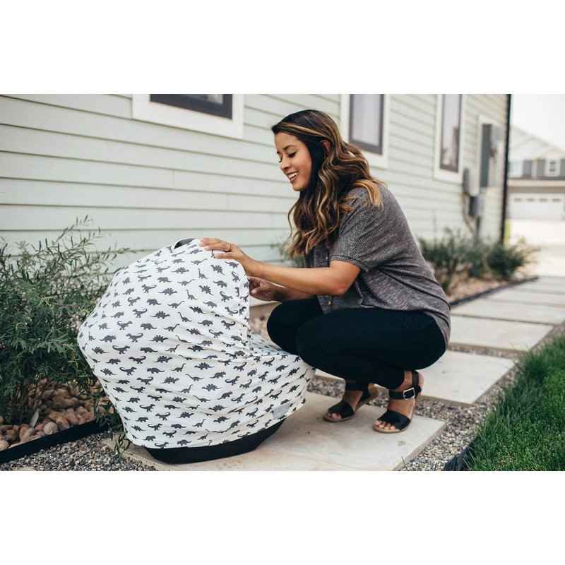 Baby Car Seat Cover Canopy and Nursing Cover Multi-Use Stretchy 5 in 1 Gift Dinos "Wild" by Copper Pearl