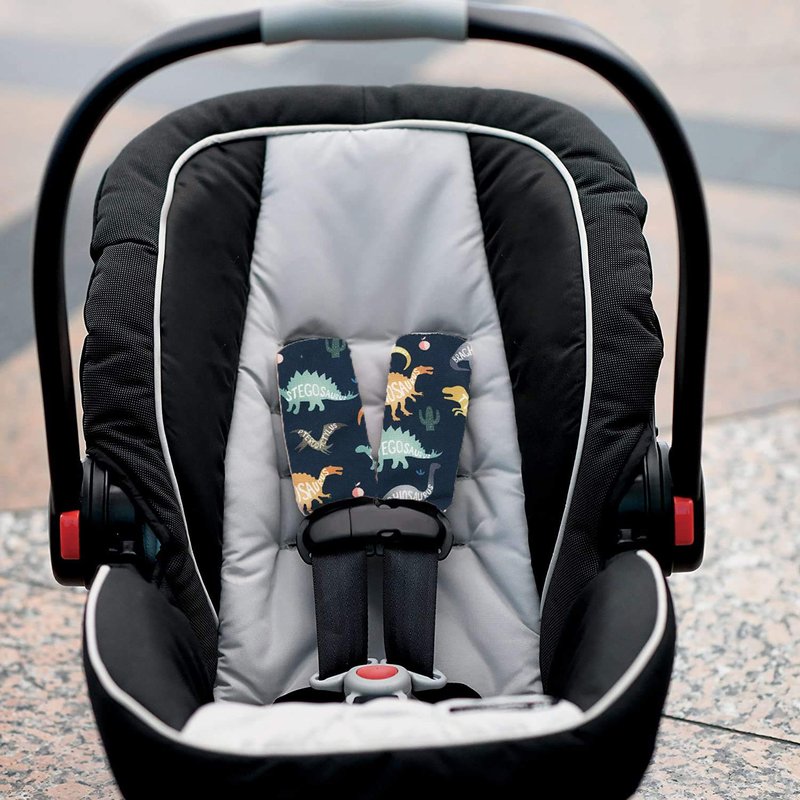 Baby Car Seat Neck Cover, Car Seat Strap Cover, Seat Belt Cushions Pads, Shoulder Strap Protectors, Reversible Pram Harness Covers in Minky Dinosaur, Baby Neck Pad Protector