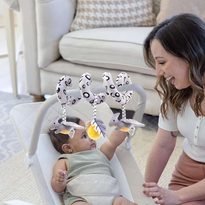 Baby Car Seat Toys, Car Seat Toys for Babies 0-6 Months, Black and White Spiral Activity Carseat Toys for Infant 0-3 Months, Stroller Toys for Babies 0 3 6 9 12 Months, High Contrast Baby Toys (Dino)