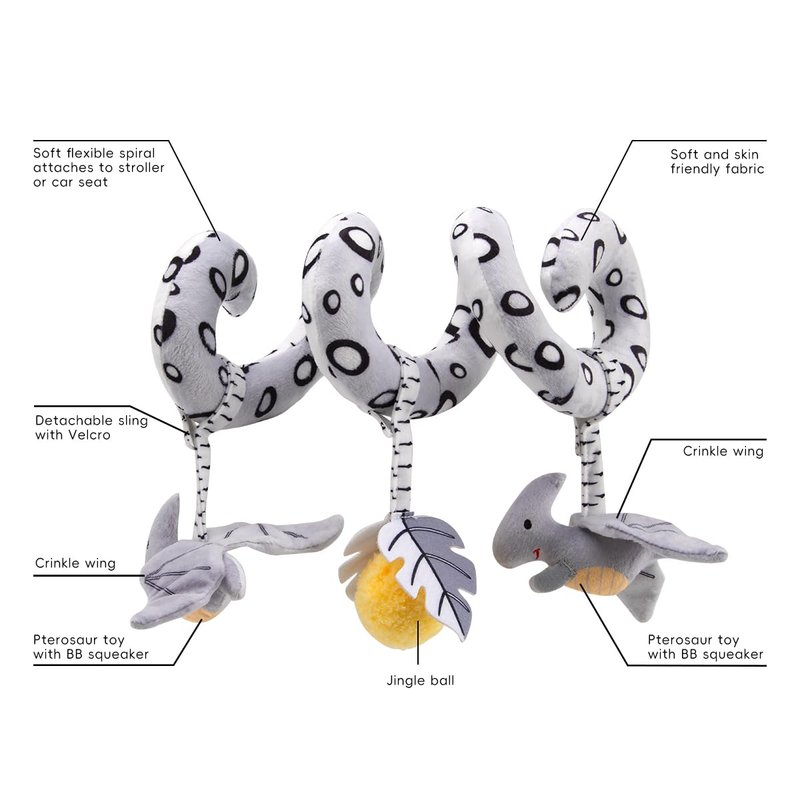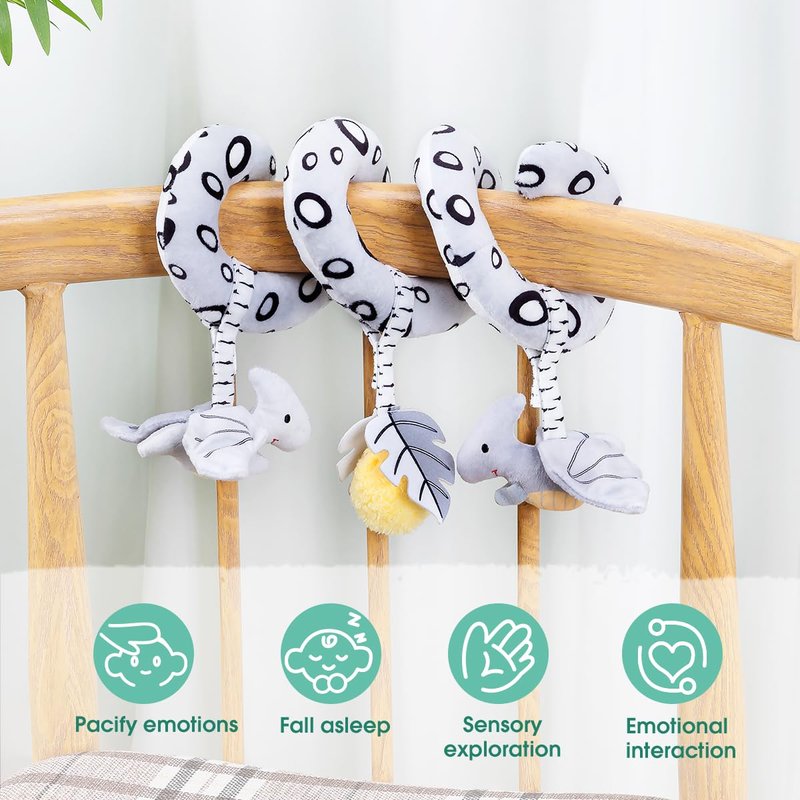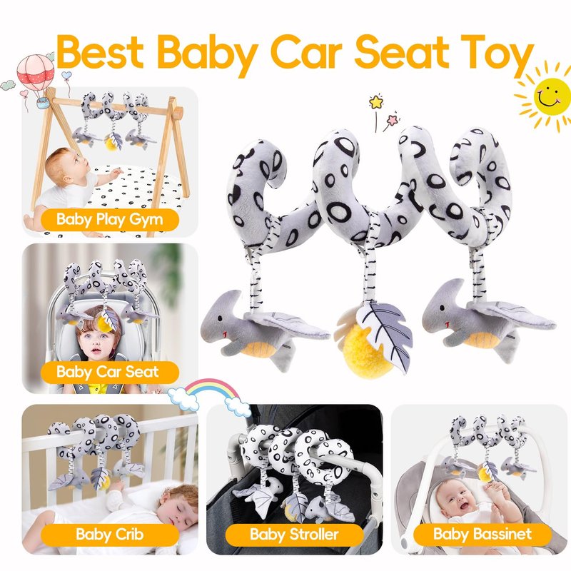 - Baby Sprial Mobile Toys: When our baby sleeps, you can put the stuffed infant toys beside your baby. The Activity Spiral Car Seat Toys can serve as your baby's sweetheart partner and accompany your baby to sleep all night. You can put baby crib toys in the Baby Gym, Play Mats, Strollers, Cribs, Baby Car Seats, Cot, etc. Any questions about baby car toys & stroller toys, please contact our customer service