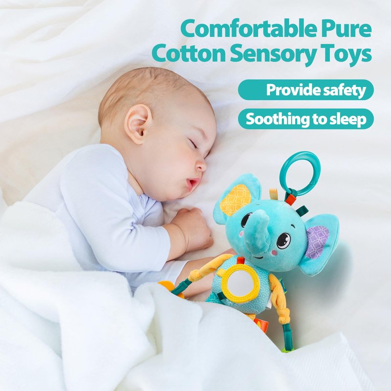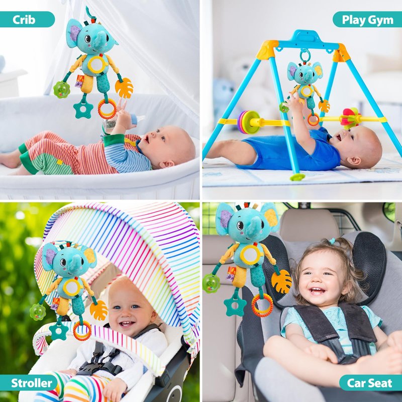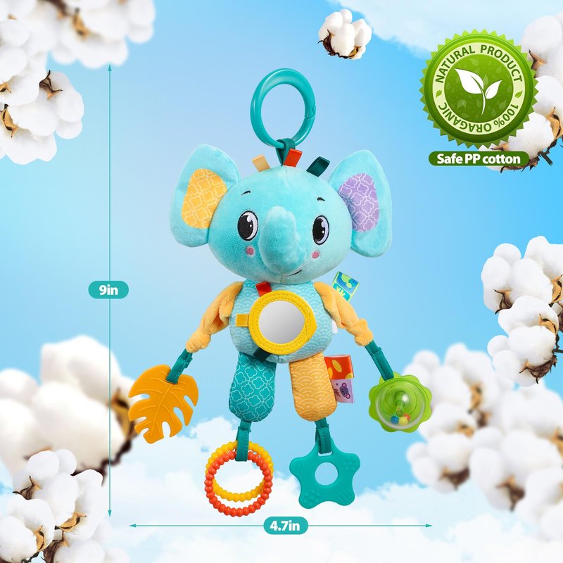 - No Batteries and BPA-Free Baby Toy: Hanging toys for baby gym, stroller toy, carseat toys hanging, this baby toy is made of soft fabric, no batteries. It's 100% BPA FREE and friendly for babies to reaching, pulling, batting, grabbing, squeezing safely, baby dangle hanging toys