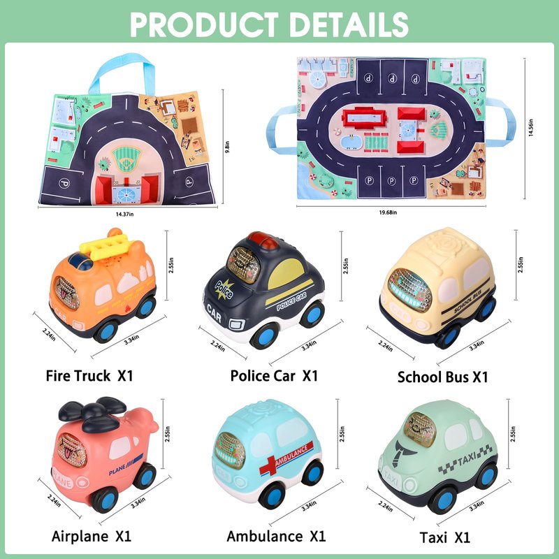 - 【6-Piece Pull Back Toys Mini Car Set】:Provide Your Child With The Ultimate Play Experience With Our 6 Different Mini Cars Including Police Car, Taxi, Rescue Car, Bus, Ambulance, Airplane. Push-Pull Toy Car For Toddlers, No Batteries Required, Push And Go, Suitable Toy Car For 1 2 Year Old Boys And Girls.