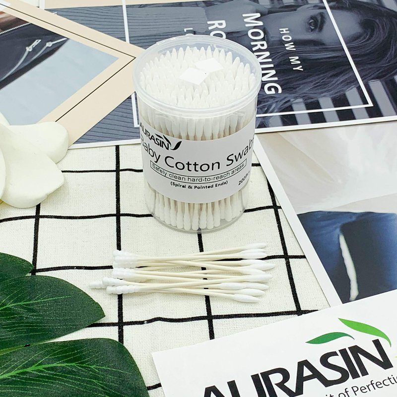 WE PUT BABY SAFETY FIRST! Babies are sensitive and need extra-special care. That’s why the Baby Cotton Swabs are designed specifically with spiral & pointed head to provide a safer way to clean in and around baby's delicate ears – or even nose! Made of ultra-soft cotton, these baby swabs prevent irritation to the skin, and are 100% BPA free. With a wide range of uses, they are ideal for makeup application and removal, household cleaning, arts & crafts, pets, detailing, polishing, first-aid and more. A VARIETY OF USES WITH TWO KINDS OF SWABS HEAD. Spiral head could effectively remove grease and dirt. Perfect for cleaning auricle, dirt in your pet’s eye hair, grease in the outer ear folds,dust in the corners of electronic devices such as keyboards, mobile phones, etc. Pointed tips for makeup and polish nail. The pointed tip is very suitable for touching up, and the silicone material will not leave fluff on your makeup or polish nail. At the same time, it will not absorb your expensive cosmetics too much. Material Cotton(Head); Paper(Shaft) Head Shape Spiral & Pointed Length Size 3 inch/ 76 mm Diameter Size 0.11 inch/ 3 mm Specification 200 Pcs Weight 2.3 ounces/ 65 g