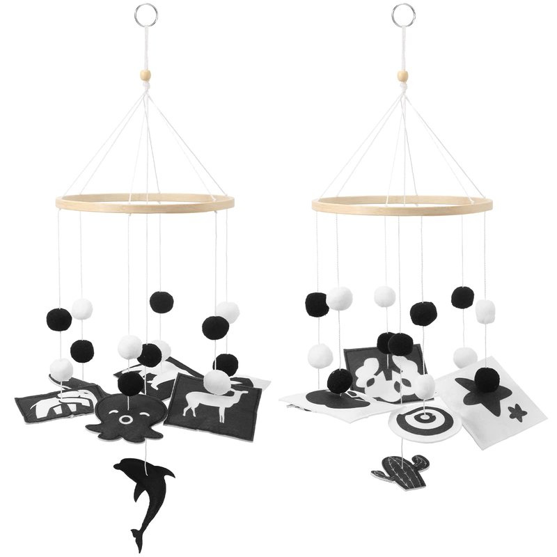 Baby Crib Mobile Black and White Mobile for Baby Baby Nursery Crib Mobile Black Baby Mobile Baby Handmade Mobiles Decor for Baby Shower Gifts Baby Cribs Ceiling Hanging Decorations 2 StylesFeature: Cute and cozy baby room decoration: This handmade crib mobile is a simple and nice decor for a boy's or girl's room that complements their bedding and accessories nicely, adding a lovely touch, warmth and delight to a baby's bedroom. Warm tips: This mobile baby for crib is for decorative purposes only, it is not recommended for babies to touch it. Each product is handcrafted and may vary slightly in design and length. Do not hang on baby's head. It needs to be hung in the middle of the crib at a height of 30-40 cm from the baby's eyes, so that the viewing angle is 45 degrees. Specifications: Quantity: 2Material: feltColor: as the pictures shownWooden circle diameter: 20 cm/ 7.87 inches Packages include: 2 x Felt baby mobile for cribNotes: Manual measurement, there may be slight differences in size. Due to the screen display, the color of the item may differ slightly from the picture. Small items are included, please use under adult supervision.