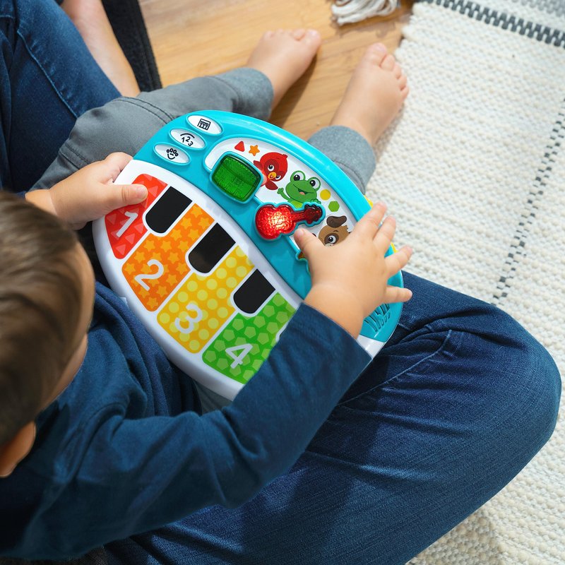 - Musical baby toy introduces instruments, numbers and animals