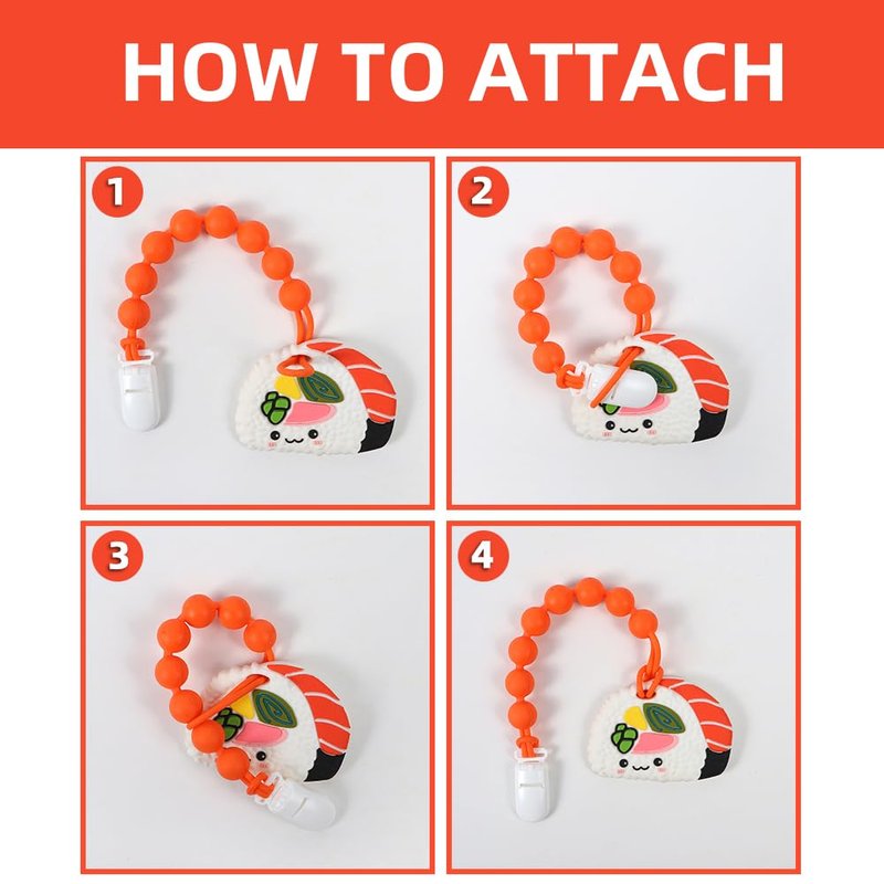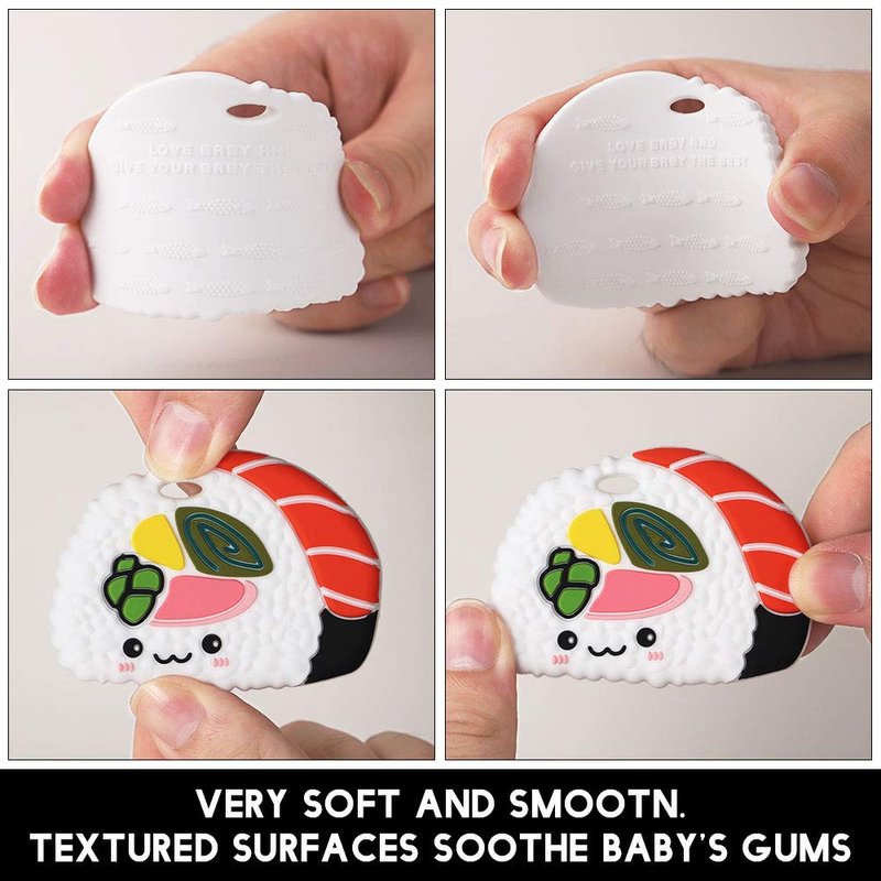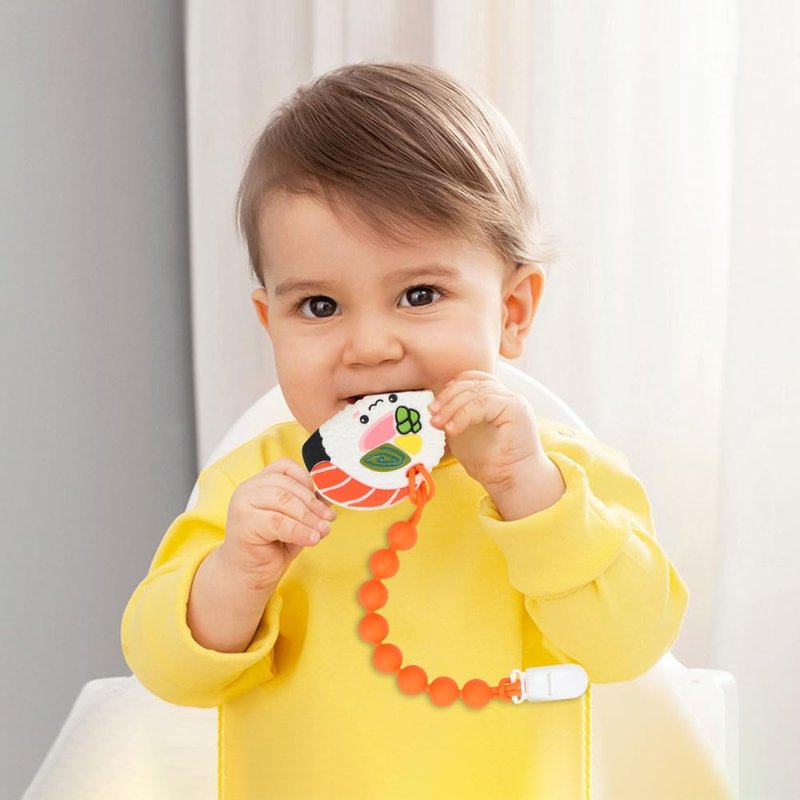 Baby Food Grade Silicone Teether Toy with One Piece Design Pacifier Clip Holder,Teething Pain Relief Toys Gift Set for 3 Months+ Boys and Girls,Freezer Safe,BPA Free. (Sushi)
