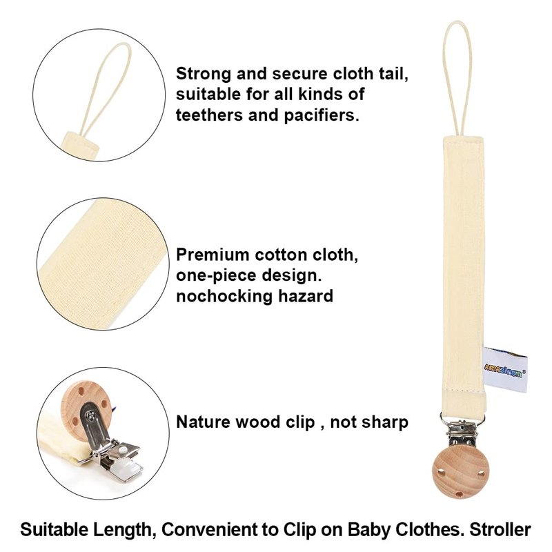 - 100% Safe:Teerher is made of BPA free food grade teething silicone,non-toxic.our clip is one-piece design,made of cotton and wood clip,not like beads pacifier clip, there is no need to worry about small beads coming off the string and posing a choking risk.Conform to satefy standards ASTM-F963 and CPSA