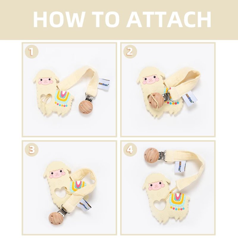 - Convenient: Our llama teether is perfect size and easy-grasp design for baby to hold,pacifier holder is perfect length for clipping on baby clothes, blankets, toys, strollers, or car seats.