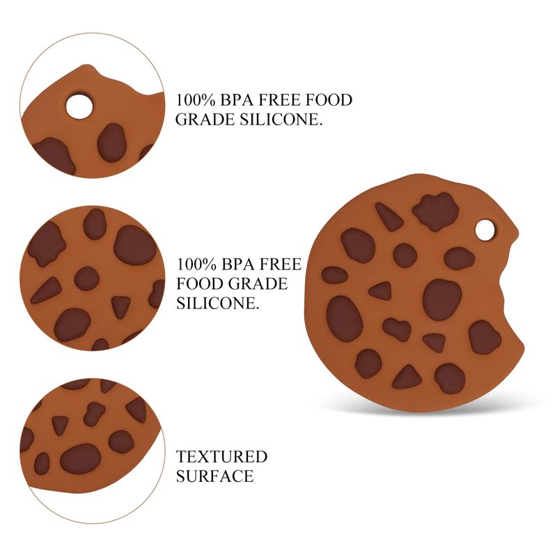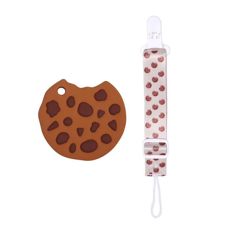 Baby Food Grade Silicone Teether with Adjustable Pacifier Clip Holder,Essentials Teething Toys,Highly Effective Pain Relief for 3 Months+ Boy and Girl,BPA Free,Freezer Safe (Cookie)