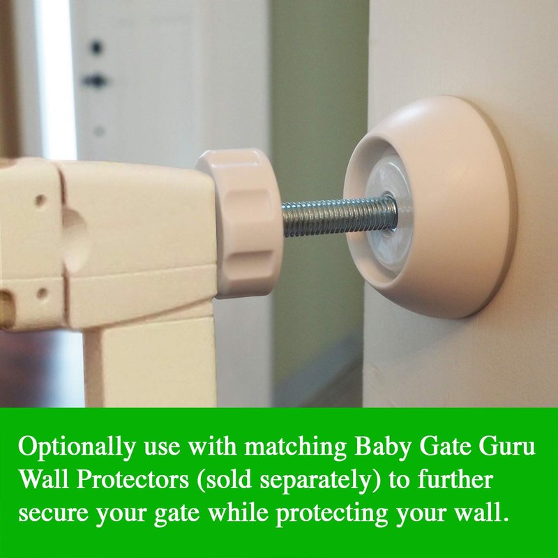 This 4 pack of pressure gate spindle rods from Baby Gate Guru is designed as a replacement kit for lost or damaged spindle rods (the threaded bolts that push against the wall to hold the gate in place), commonly used in walk through pressure mounted baby and pet safety gates.