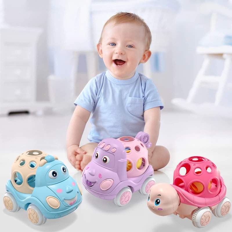 - 🚗【 Toy Cars for Babies 】: Totally 3 set cute baby car toys. These baby rattle cars include three lovely styles: turtle, truck and crane.