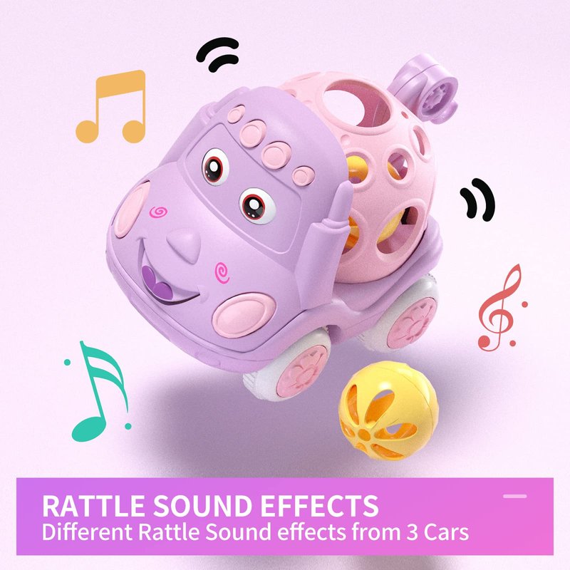 - 🪅【 Baby Rattle Toys for Infant Girls 】: The top of each toy car is a soft and flexible rattle with finger holes, making it easy for babies to grasp. Babies and toddlers enjoy playing with these pink rattle toy cars.