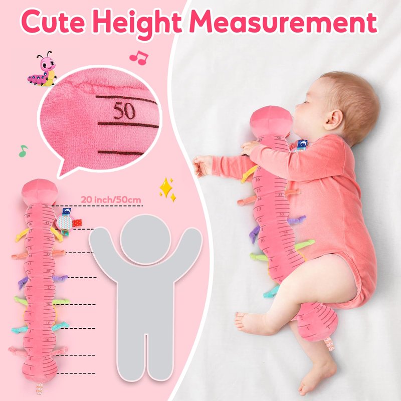 - 4 IN 1 Baby Toys: We combine the fun of rattle toys, music toys, crinkle toys and animal plush toys into this baby textured toys. Multiple ways to play help baby develop fine motor skills, and brain development. On the back is a measuring ruler that allows moms easily measure the baby's height during the baby tummy time. Wonderful infant toys accompany 3-6 months baby grow up. Best Christmas stocking stuffers, newborn baby first birthday gift, toys for 6 month old girls.