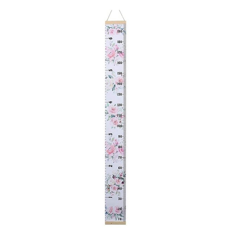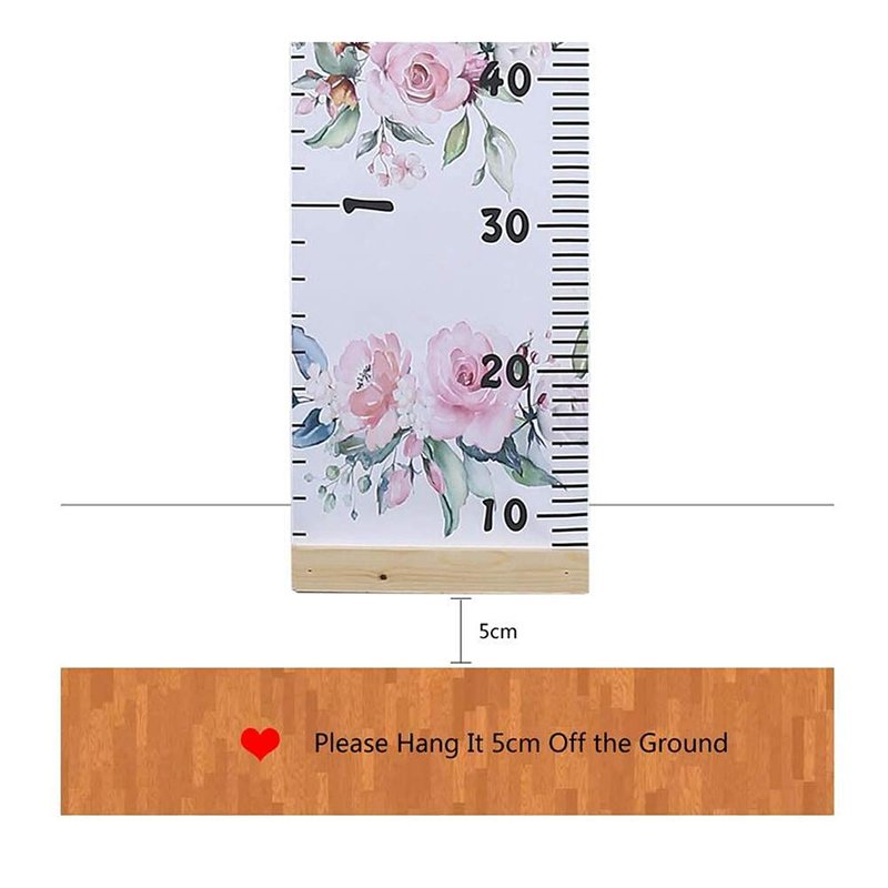 Baby Growth Chart Ruler Kids Roll-up Height Chart Wall Hanging Measurement Chart Wall Decor with Wood Frame for Kids Nursery Room Canvas Removable Height Growth Chart 8'' x 79'' (Pink Flower)