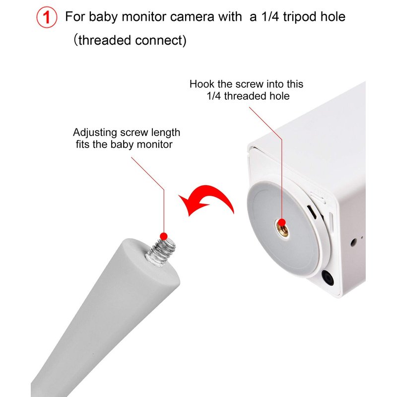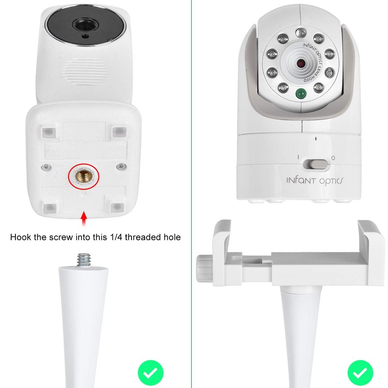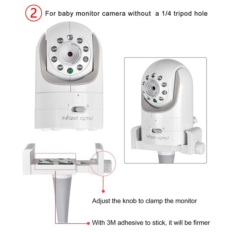 ✔ Compatible with cameras with a straight body (like the Infant Optics DXR 8) less than 3 inches wide ,or Baby monitor camera with 1/4 threaded hole(threaded connect) etc. Notes: