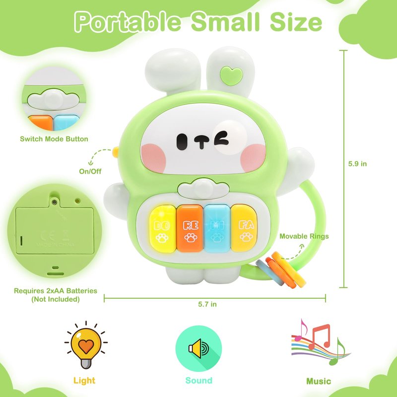 - Great for Carrying Around: Our baby piano toy is small in size and comes with a handle design, making it perfect for carrying around. Whether you are at home, at the park, at a friend's house, or on a long trip, this toy is easy to carry. 2 AA Batteries of baby toy Required (Not Included)